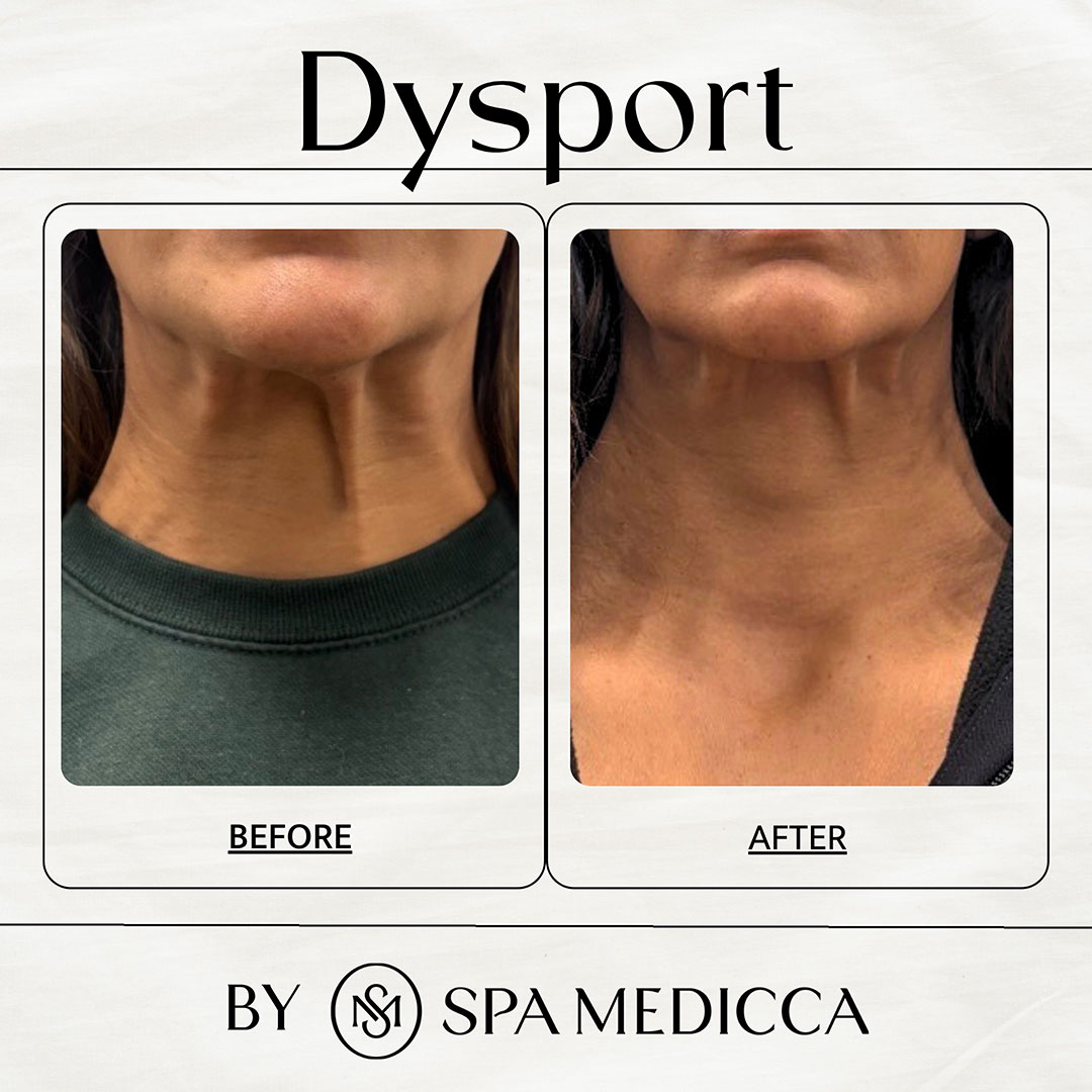Dysport is an FDA-approved injectable that can temporarily relax specific facial muscles responsible for dynamic wrinkles, which are formed by repeated facial expressions. By targeting these specific muscles, Dysport helps smooth moderate to severe frown lines, crow’s feet, and forehead wrinkles while preserving your facial movement. With its refined formulation and fast-acting results, Dysport helps you achieve a refreshed appearance. At Spa Medicca, our expert injectors customize every treatment to enhance your natural beauty.