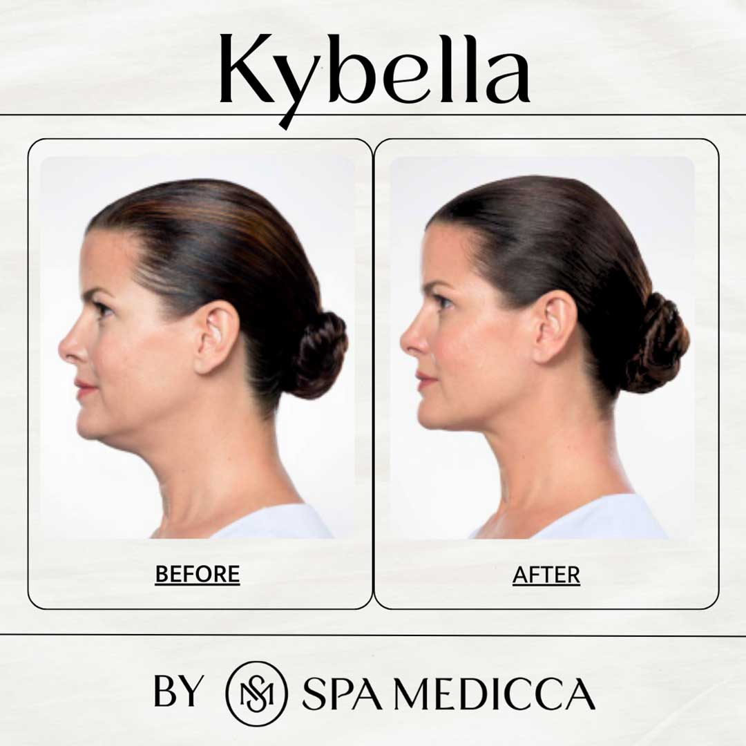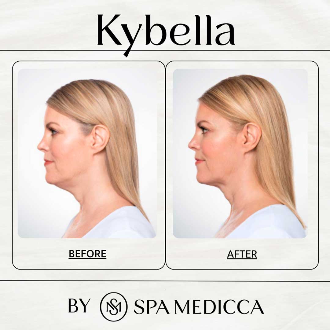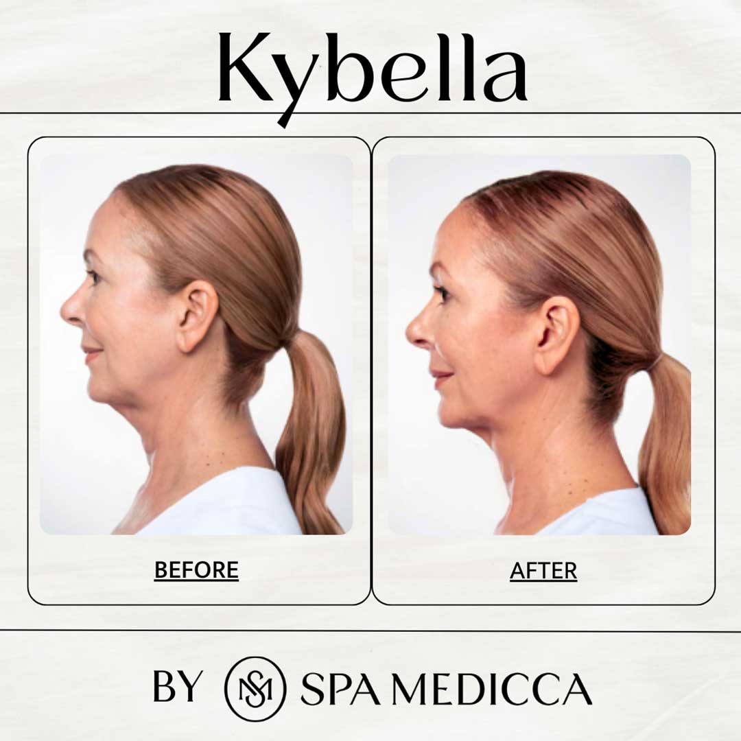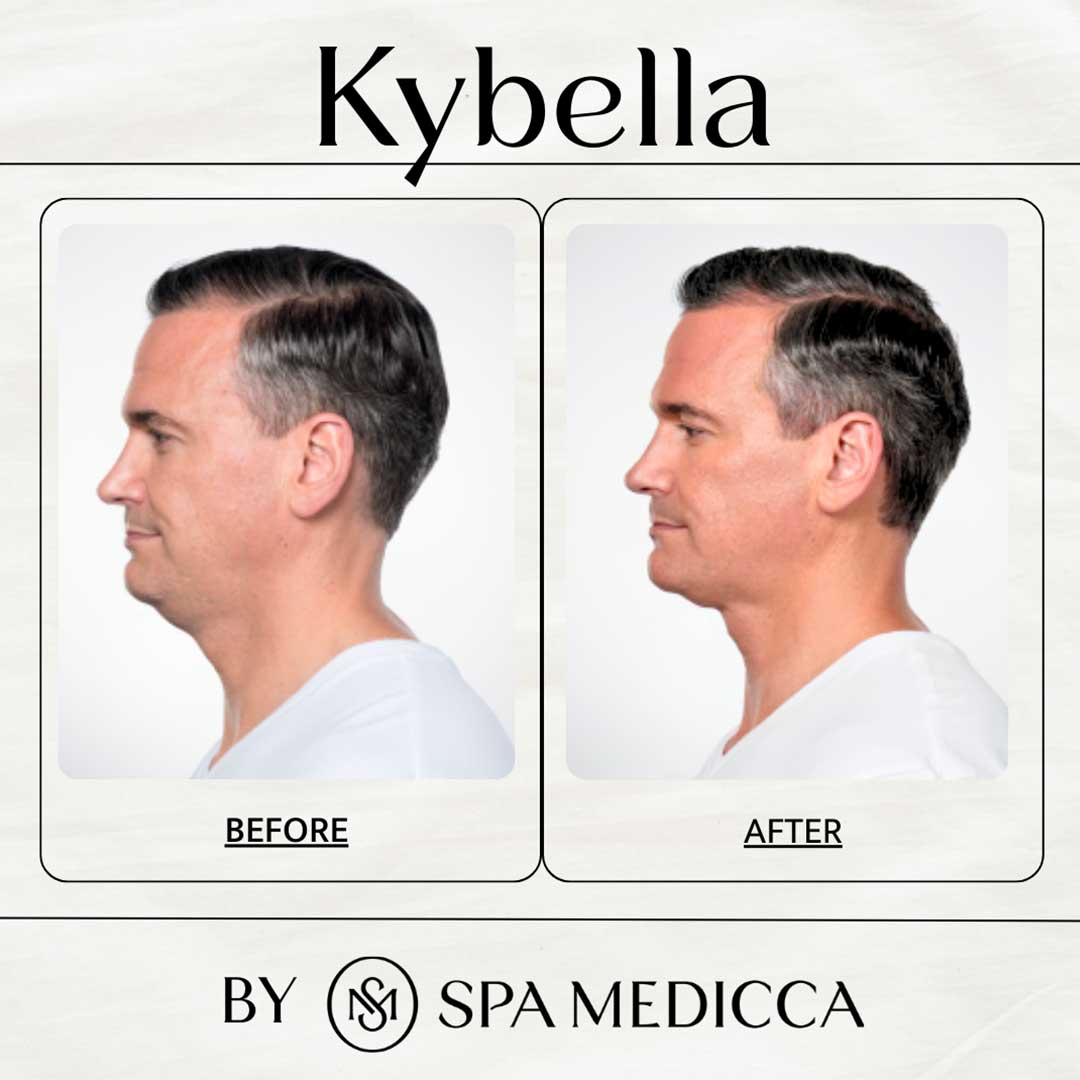 KYBELLA is an FDA-approved injectable formulated to permanently dissolve stubborn fat beneath the chin, commonly known as a “double chin.” Its active ingredient, deoxycholic acid, naturally breaks down and absorbs fat cells, resulting in a more sculpted and defined jawline without surgery or downtime. At Spa Medicca, KYBELLA treatments are tailored to refine your profile safely, effectively, and beautifully for lasting results.