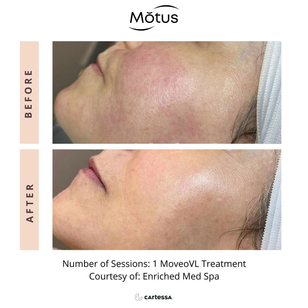 Moveo VL targets unwanted redness, flushing, rosacea, and small vascular lesions using the Nd:YAG laser. This wavelength is absorbed by blood vessels, causing them to gently collapse and fade as your body reabsorbs them. These vascular treatments are available exclusively at our Deerfield location, where advanced laser care supports clearer, calmer-looking skin.